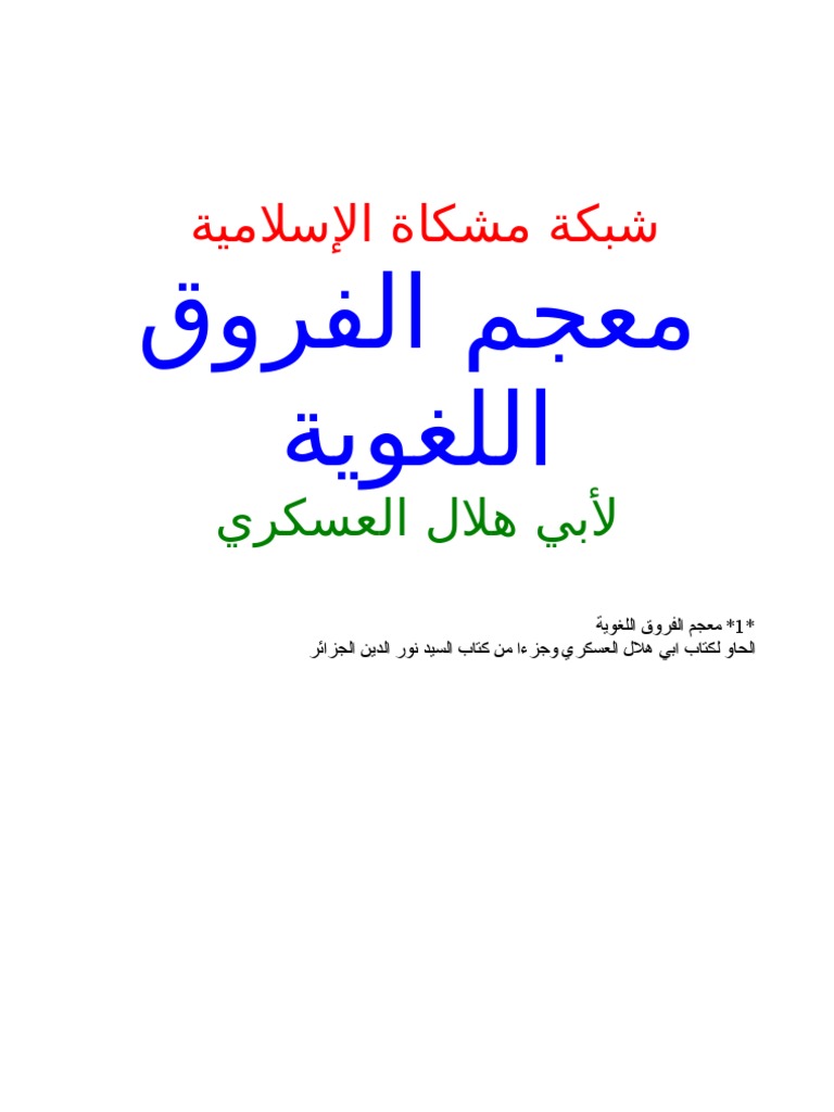 معجم الفروق اللغوية أبي هلال العسكري تحميل وقراءة أونلاين Pdf