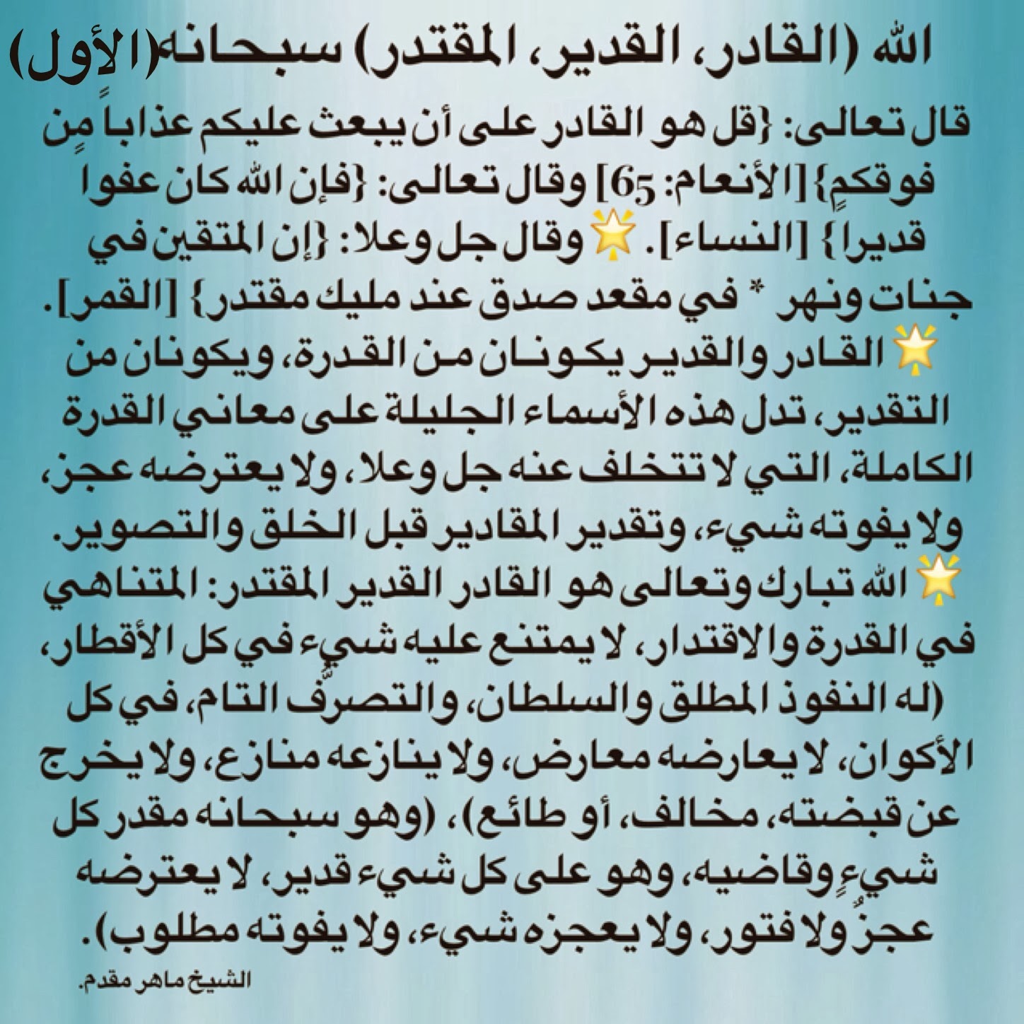 ٩٧ ٩٨ معنى اسم الله القادر والقدير موقع المزيد