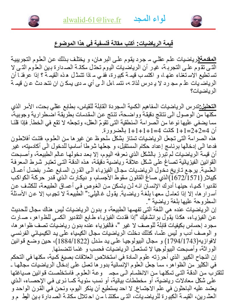قيمة الرياضيات أكتب مقالة فلسفية في هذا الموضوع