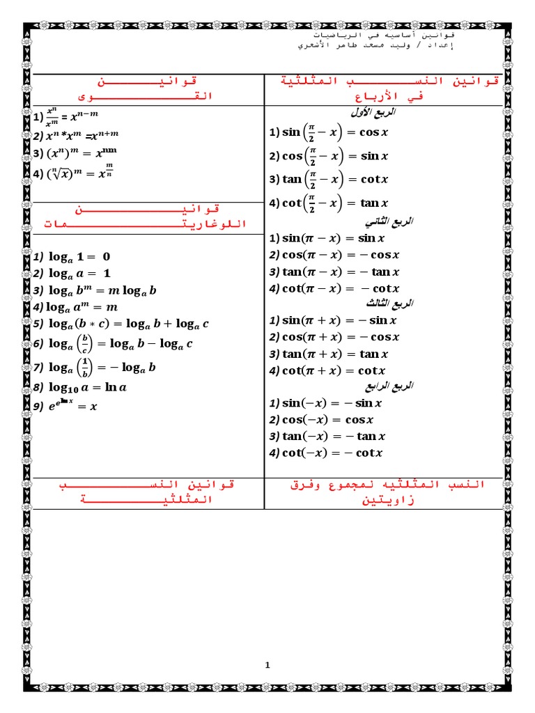 ملخص كامل لقوانين التفاضل والتكامل في 5 صفحات Pdf فقط