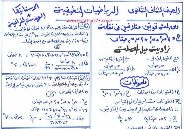 مذكرة مراجعة ليلة الامتحان بالاجابات فى الرياضيات التطبقية للصف الثانى الثانوى ترم اول 2020 أ سعد