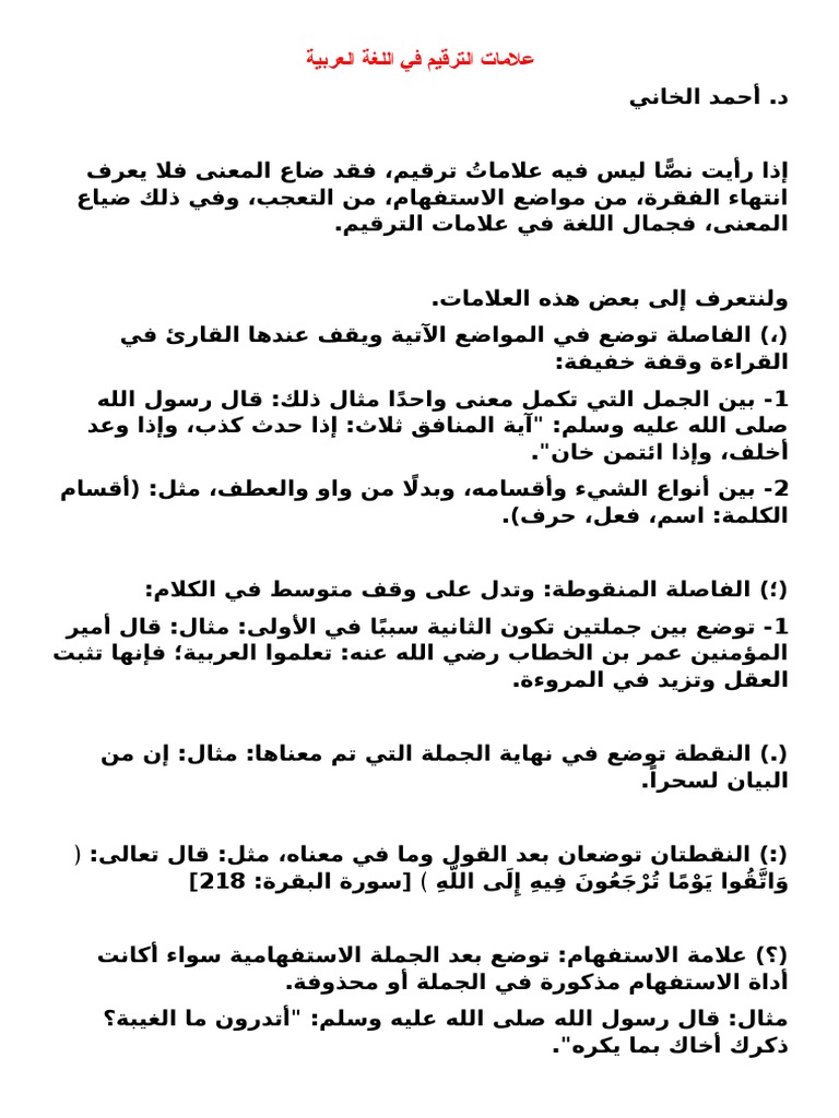 نص فيه علامات الترقيم واعراف الكتابه