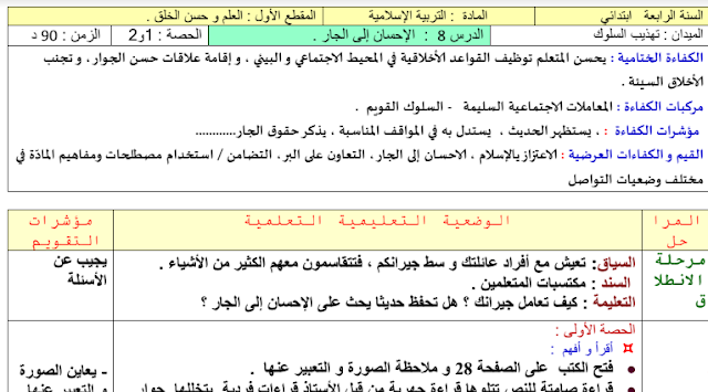 درس الاحسان للسنة الرابعة ابتدائي الجيل الثاني