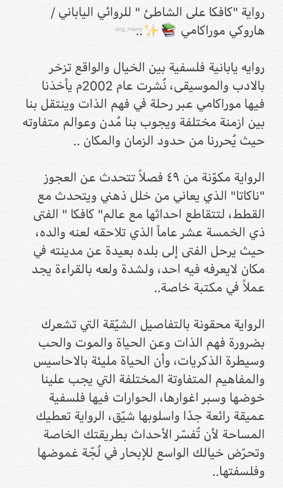 Jamalon اقتباس رواية كافكا على الشاطئ للكاتب هاروكي موراكامي Facebook