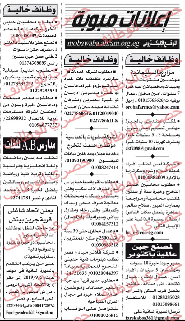وظائف الاهرام الجمعة 2 اغسطس 2019 الاهرام 2 8 2019