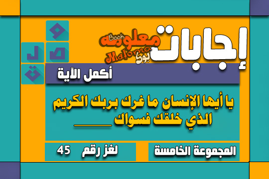 جواب لغز يا ايها الانسان ما غرك بربك الكريم الذى خلقك فسواك من لعبة وصلة المجموعة الثامنة لغ صقور الإبدآع