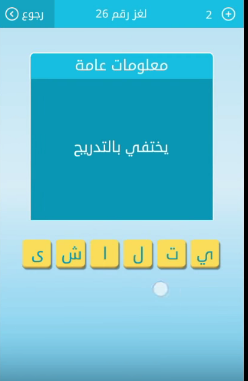 يختفي بالتدريج من 6 حروف لعبة رشفة س ئل مارس 20 2016 بواسطة hmsaatyemen معلومات عامة يختفي بالتدريج من 6 حروف لعبة رشفة. اللفظ الذي بمعنى يختفي بالتدريج وهو مرادفها أيضا هي كلمة. يختفي بالتدريج من 6 حروف س ئل يونيو 28 2016 بواسطة asalni ما معنى يختفي بالتدريج مكون من 6 حروف لعبة رشفة. حل لغز يختفى بالتدريج من لعبة رشفة لغز رقم 26 للمجموعة الثالثة مرحبا متابعـــــينا الكــرام وما زلنا نتواصل فى حل لعبة رشفة وهى افضل لعبة تحدى مرح وفائدة وساعات من المتعة هى لعبة رشفة الشهيرة باسلوب جديد ومميز ملىء.